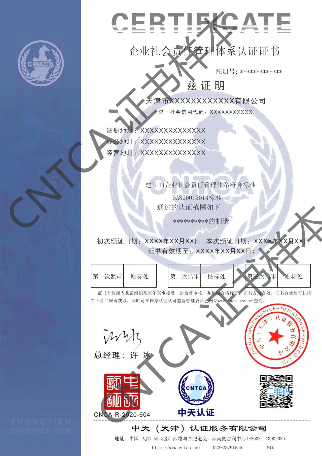 SA8000即“社会责任标准”,是Social Accountability 8000的英文简称,是全球首个道德规范国际标准。其宗旨是确保供应商所供应的产品,皆符合社会责任标准的要求。SA8000标准适用于世界各地,任何行业,不同规模的公司。其依据与ISO9000质量管理体系及ISO14000环境管理体系一样,皆为一套可被第三方认证机构审核之国际标准。